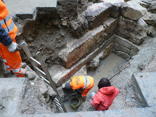 Rivedendole però, devo dire che la scoperta, avvenuta all’incrocio fra via Guinigi e via dell’Angelo Custode, è veramente eccezionale. A detta degli stessi archeologi (Abela e Ciampoltrini),sono venuto a sapere che questi in realtà non avevano la minima percezione delle reali dimensioni delle strutture fortificate della città di Lucca in epoca quanto meno imperiale. Le foto testimoniano dell’enorme spessore dei conci in calcare bianco che dovevano forse appartenere ad una delle molte torri che si trovavano equidistanti l’una dall’altra a difesa del perimetro murario. E’ stata una sopresa per tutti gli archeologi, tanto che Ciampoltrini (locale responsabile per la soprintendenza archeologica della Toscana) ha dichiarato che avrebbe dovuto modificare tutte le pubblicazioni sin qui messe alle stampe.